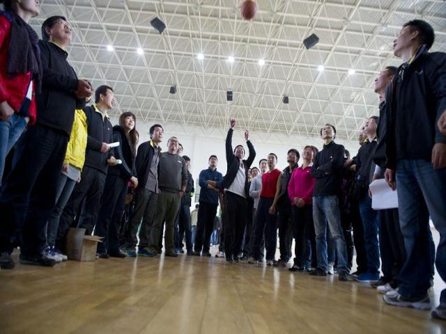 本屆運(yùn)動(dòng)會(huì)共設(shè)置了羽毛球比賽、撲克牌摜蛋、消防器材使用接力、集體跳繩、踢毽子團(tuán)體賽、手足情深、車輪滾滾、仰臥起坐、定點(diǎn)投籃等10余個(gè)比賽項(xiàng)目,由各部門組合而成的6支代表隊(duì)以及公司高層領(lǐng)導(dǎo)參加了比賽。早上八點(diǎn)三十分,在櫻井董事長簡短而又熱情激昂的開幕辭中拉開了比賽的帷幕。